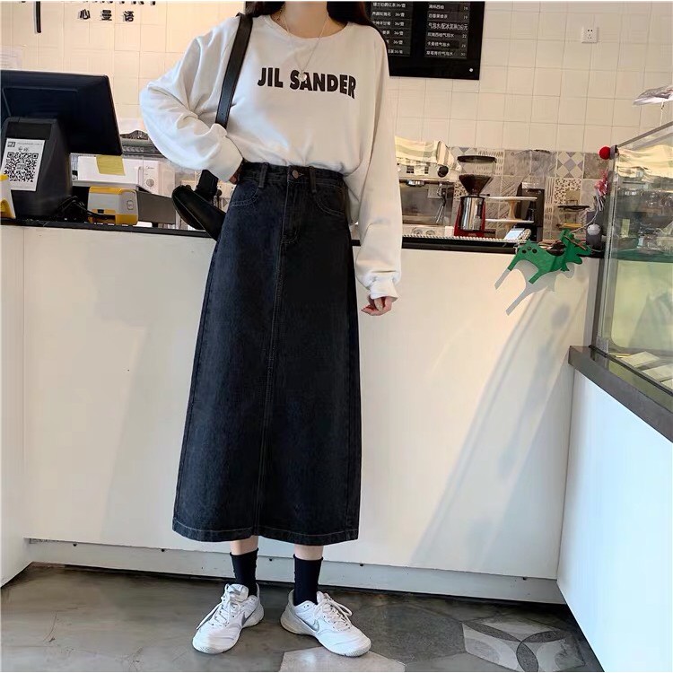 Chân Váy Jean Dáng Dài Qua Gối_Váy Xòe A7