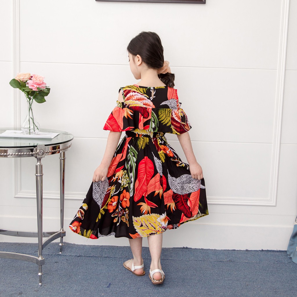 đầm công chúa Công Chúa Tay Dài Hoạ Tiết Hoa Phong Cách Hàn Quốc Cho Bé Gái