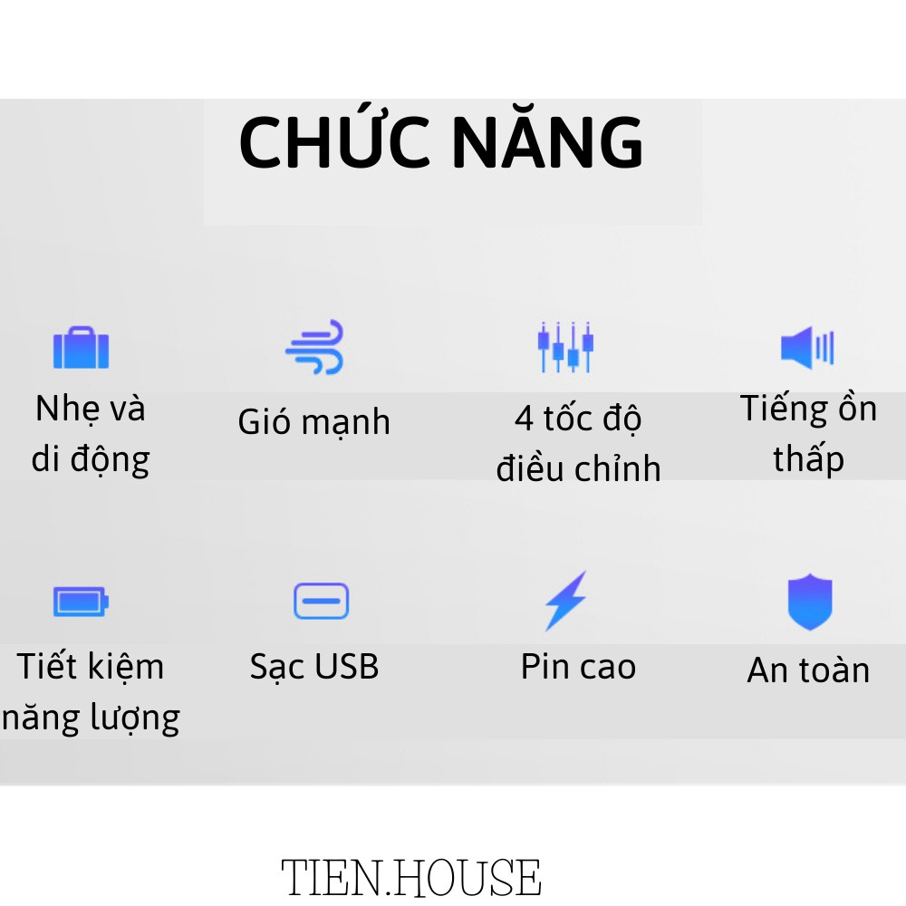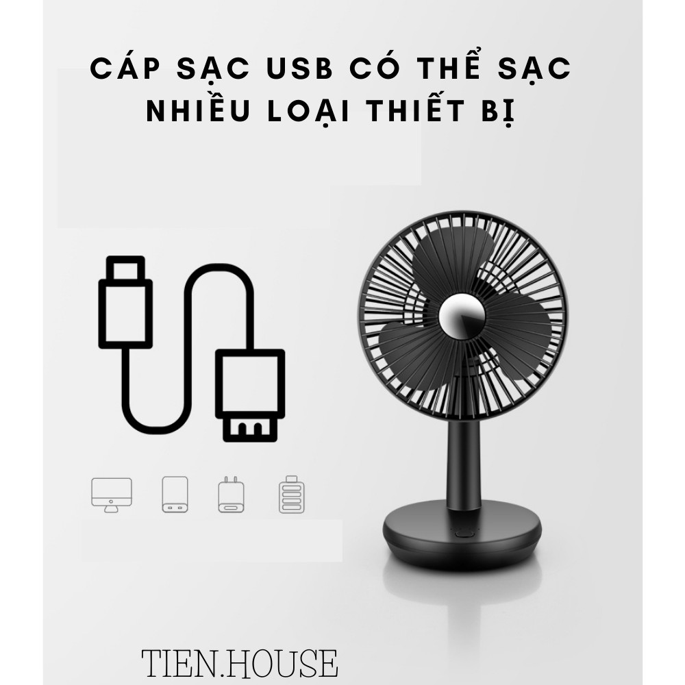 Quạt mini cầm tay, để bàn tích điện, quạt văn phòng đa năng TIEN.HOUSE