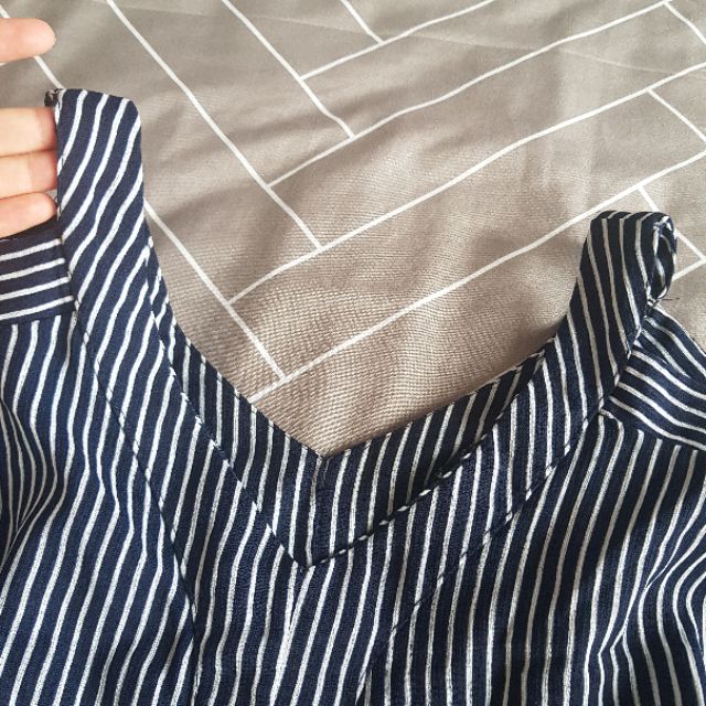 Áo croptop sọc cổ bẻ