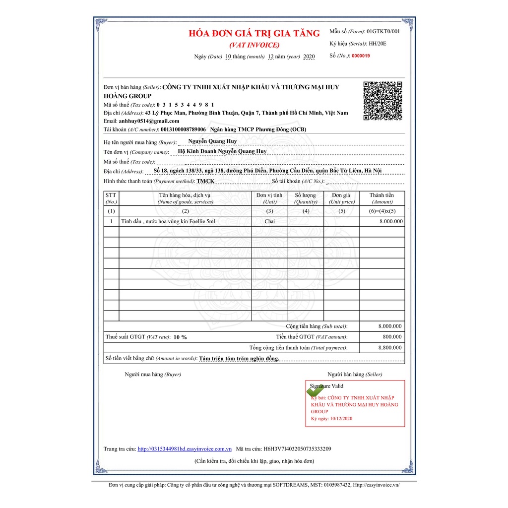 Nước hoa 20ml mùi nam