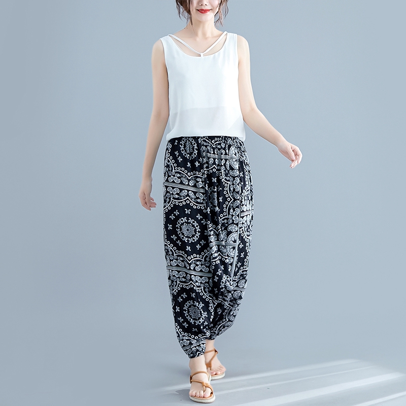 Loose Ethnic Floral Elastic, Casual Loose Ethnic Floral, Ethnic Floral Elastic Waist, 🎀🎀Women Casual Loose Ethnic