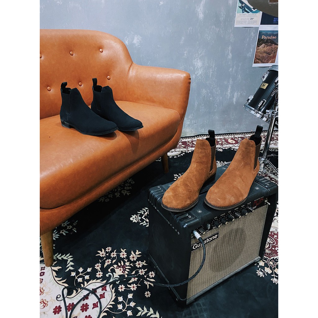 [CAO CẤP] Giày boot nam cổ cao CHELSEA DA LỘN màu nâu da thật mũi tròn đế cao su đúc Văn phòng công sở Sartorial BH1 năm