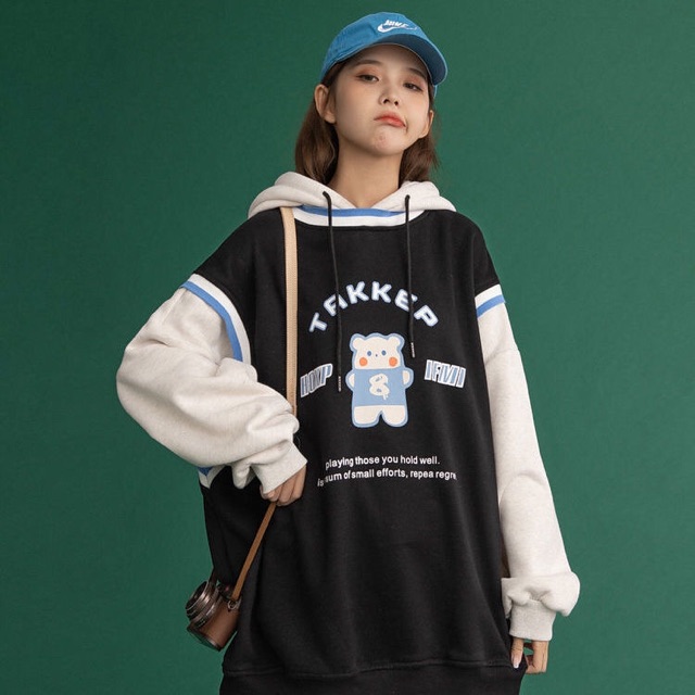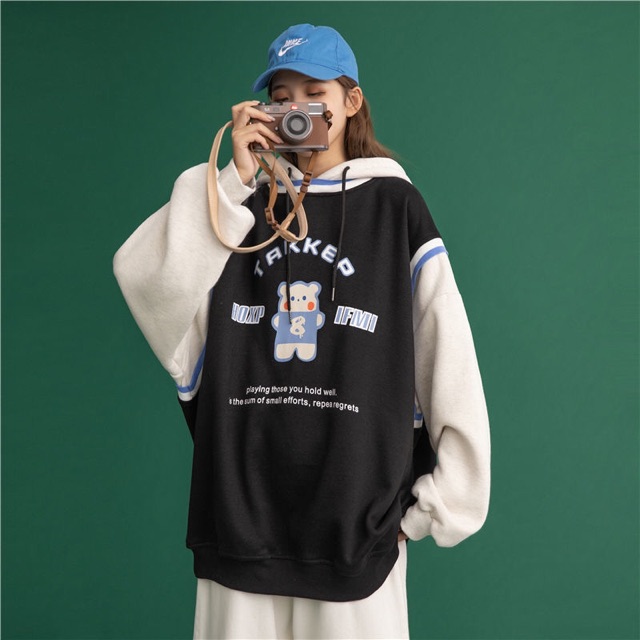 (Order) Áo hoodie ulzzang unisex phối tay 🌟FREESHIP🤗 áo nỉ lót bông dáng rộng ⚽️