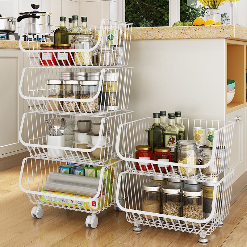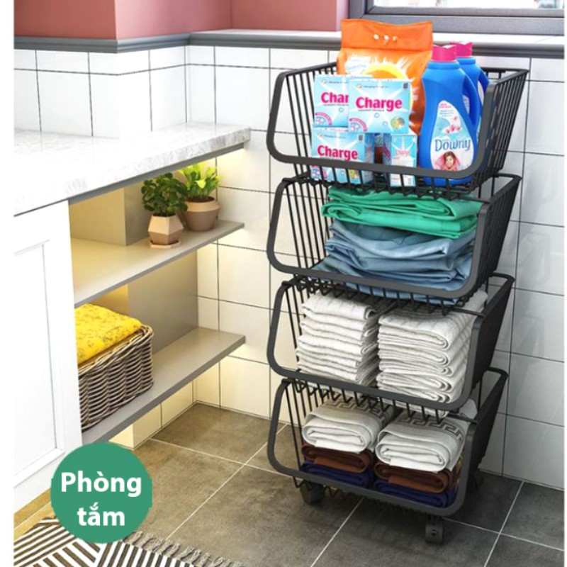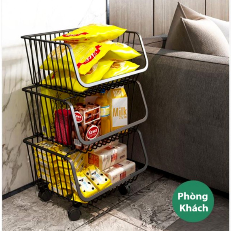 Kệ sắt nhiều tầng có bánh xe để đồ dùng nhà bếp, kệ đựng rau củ, hoa quả, trái cây, gia vị, đồ dùng nhà bếp