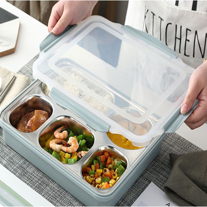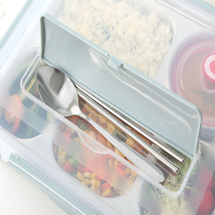 Hộp Cơm Văn Phòng 5 Ngăn Có Giá Đỡ Điện Thoại Kèm Đũa Thìa