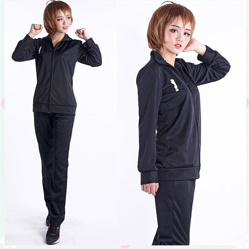 Áo khoác/ Quần dài hóa trang Haikyuu Karasuno High School màu đen thể thao