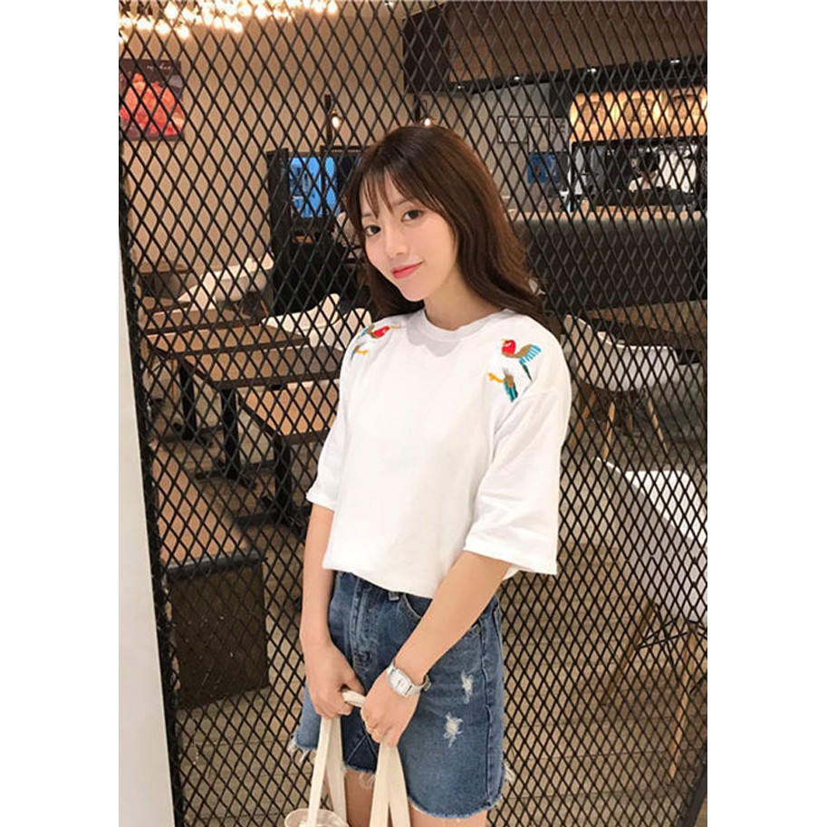 Áo Thun Nữ Ngắn Tay Cổ Tròn Thời Trang Hàn