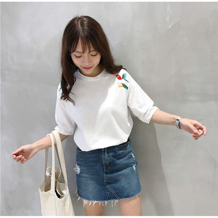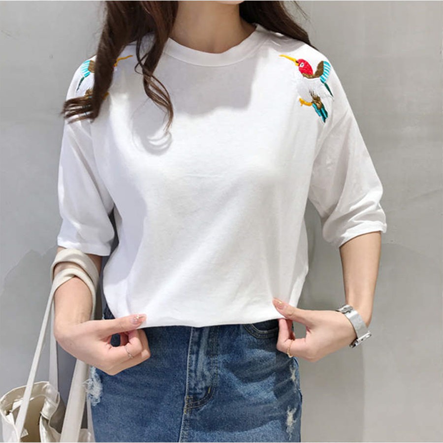 thun nữ trắng thêu, Áo thun nữ trắng