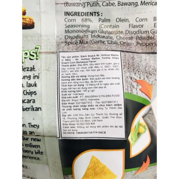 SNACK MR.HOTTEST MAITOS VỊ, MAITOS VỊ BBQ 140G, MR.HOTTEST MAITOS VỊ BBQ