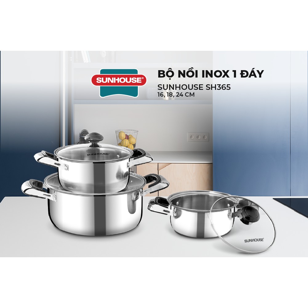nồi inox 1 đáy, Bộ nồi inox 1, inox 1 đáy Sunhouse