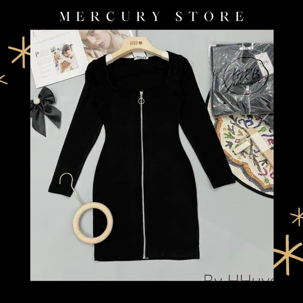 Đầm body dây kéo tay dài
