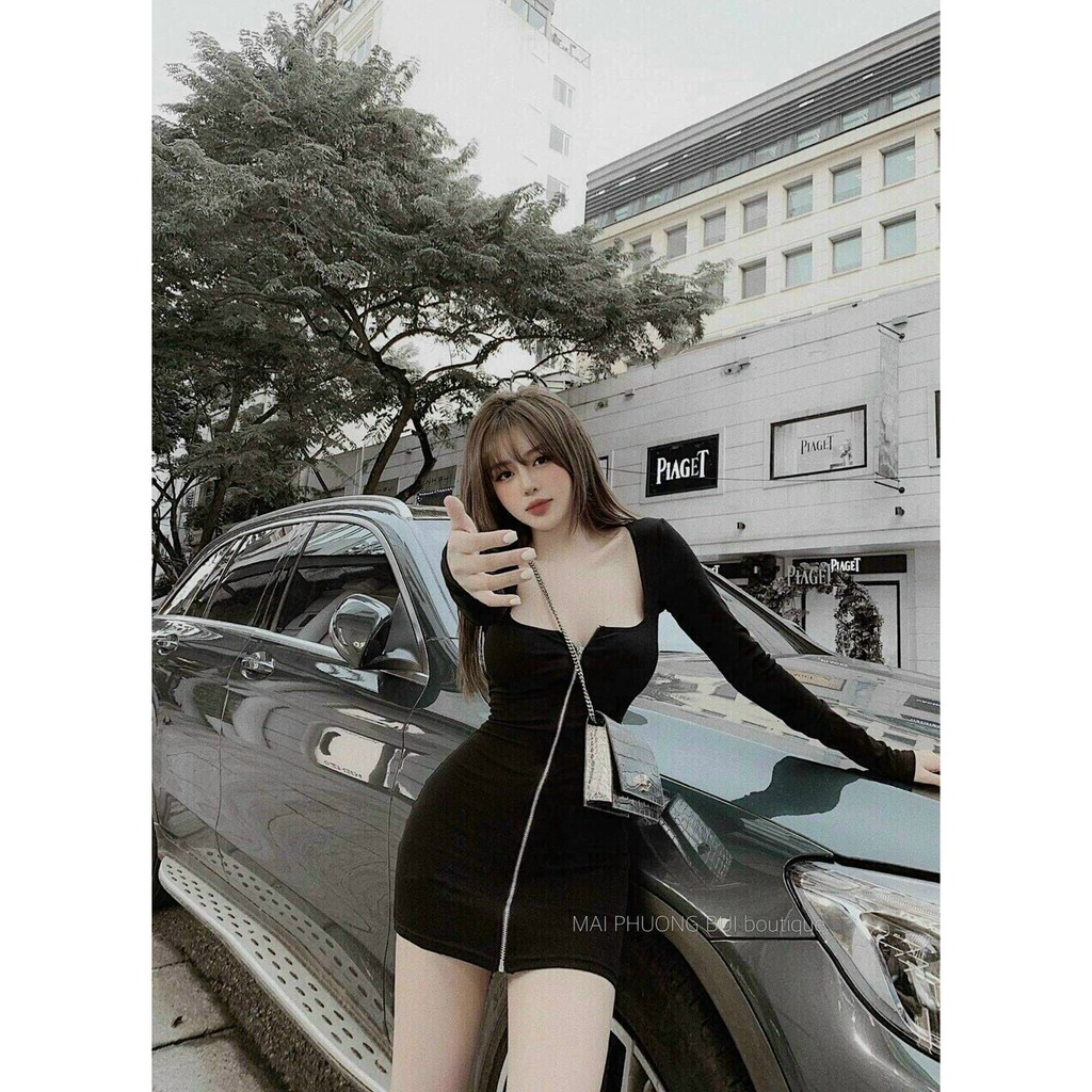 [MẪU MỚI] Đầm Body Tay Dài Khoét Eo Cúc Ngực Cài Thích Hợp Mặc Đi Tiệc Đi Làm Đi Chơi