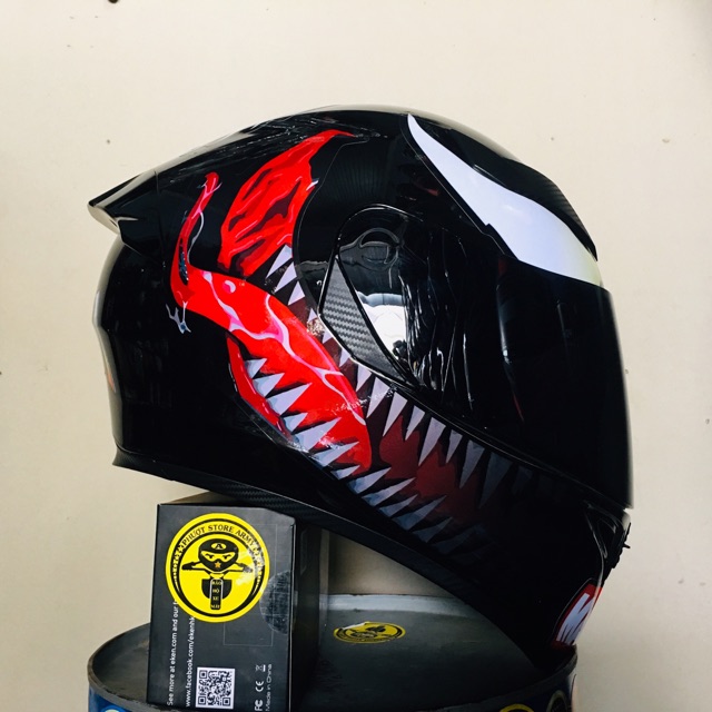 MŨ NÓN BẢO HIỂM ROYAL M138B ĐEN BÓNG LÊN TEM VENOM CỰC CHẤT TẶNG TÚI ĐỰNG MŨ
