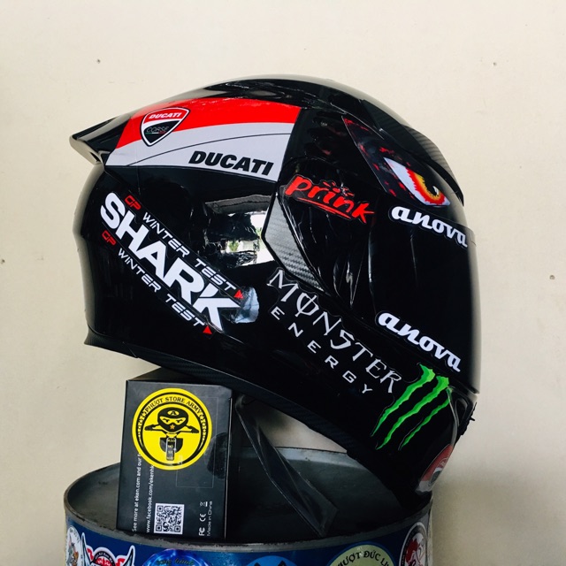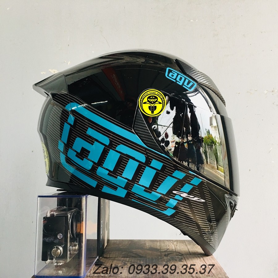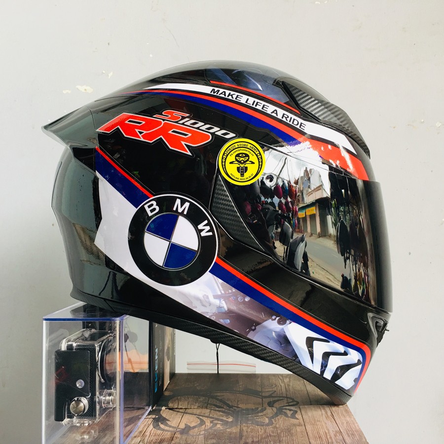 MŨ FULLFACE ĐEN BÓNG LÊN TEM BMW XANH, TẶNG ĐUÔI GIÓ PISTA