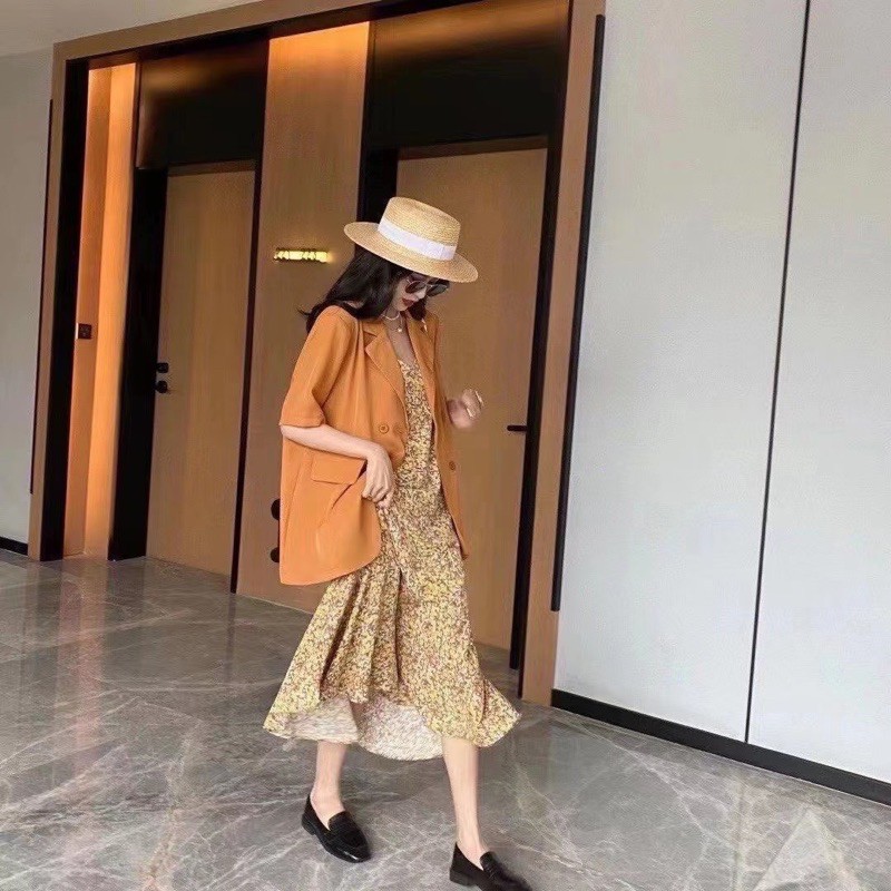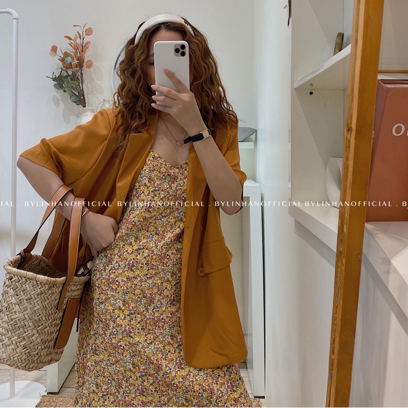 hoa nhí + blazer, váy hoa nhí +, Set váy hoa nhí