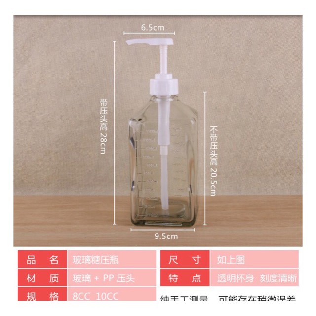bơm siro thủy tinh, Bình bơm siro thủy, siro thủy tinh (