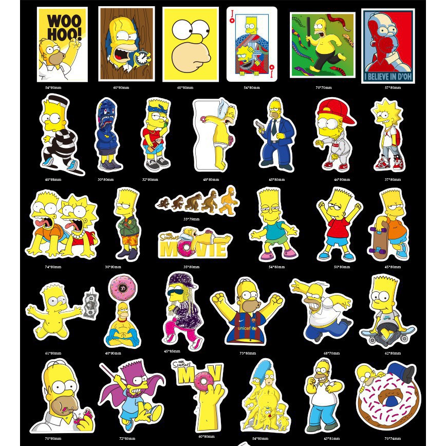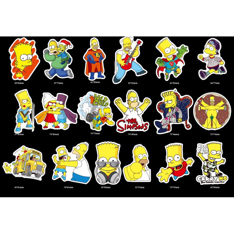 [Freeship 40K] Set 50 Miếng Sticker Simpson Chống Nước Dán Nón Bảo Hiểm, Laptop, Vali, Tủ, Bàn Học, Xe Máy
