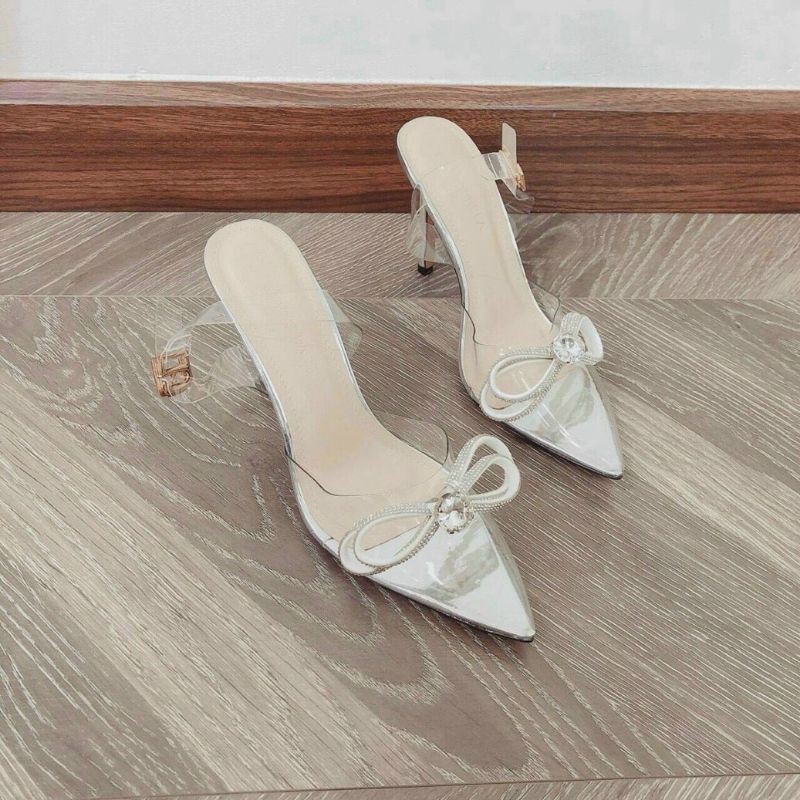 Giày cao gót mũi vuông quai trong suốt xỏ ngọc trai giả thời trang tinh tế sang trọng