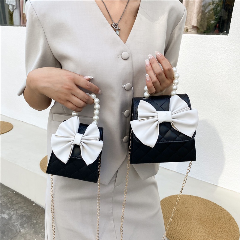 Túi Xách Nữ Quai Ngọc, Túi Đeo Chéo Đen Trắng 20.10