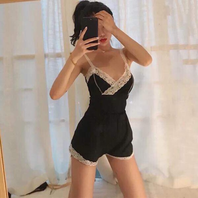 Set Đồ Ngủ Áo Hai Dây + Quần Short Phối Ren Quyến Rũ Cho Nữ