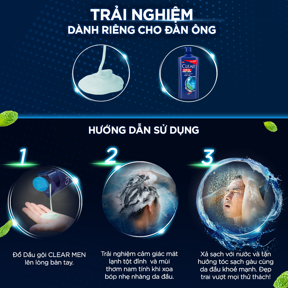 Dầu Gội Đầu cho nam Clear Men đánh bay gàu, ngứa và vi khuẩn mát lạnh cực đỉnh suốt ngày dài 900g