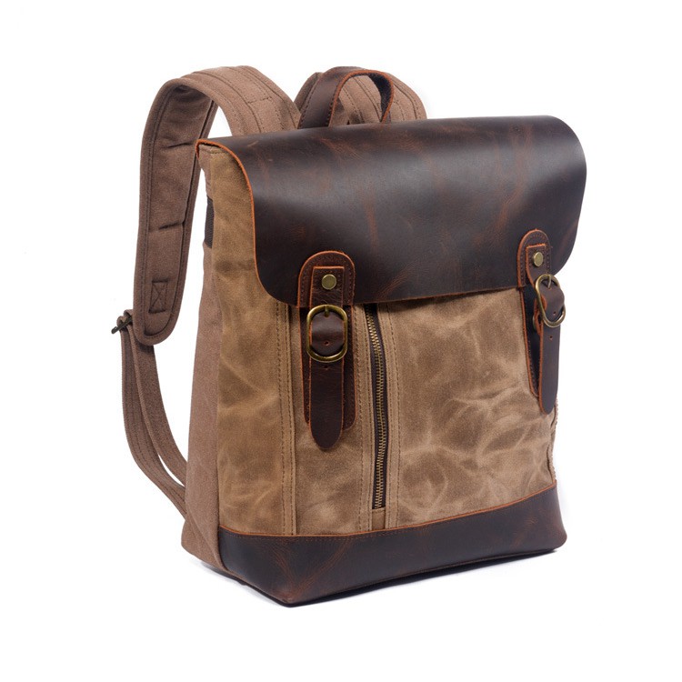 [Bảo Hành Trọn Đời] Balo canvas Hutaleather Shadow nắp đậy da bò nguyên miếng đẳng cấp thời thượng nam giới HB4