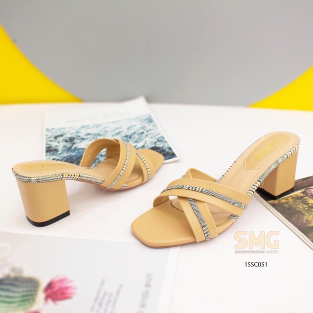 Guốc viền kẻ be