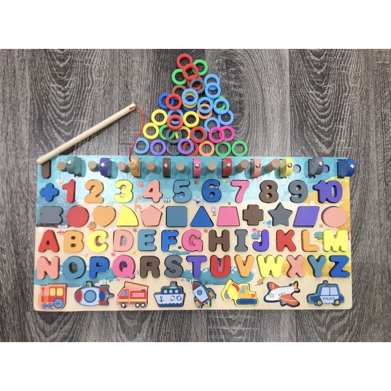 [Mã 11LSSALE giảm 100% đơn 50k] Bảng gỗ 6 in 1 - Bảng câu cá đa năng, số đếm, chữ cái, hình học, phương tiện giao thông
