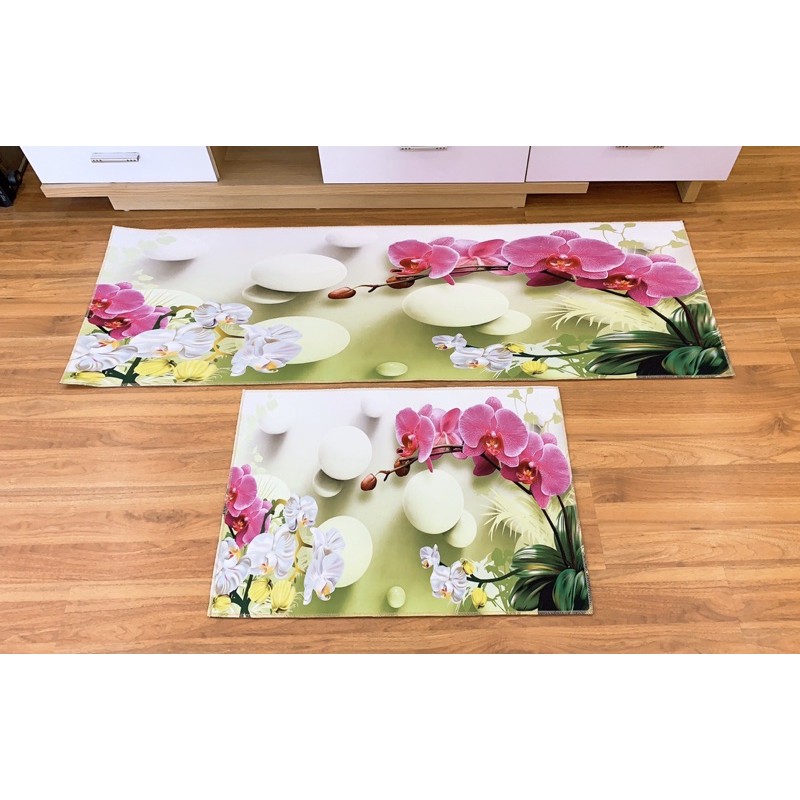Thảm bếp 3D trang trí nhà bếp phòng ngủ (40*60 + 40*120 cm) cao cấp cao su chống trượt