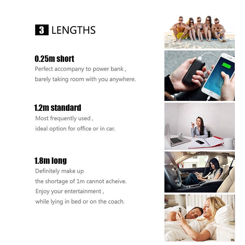 Dây cáp sạc loại C sạc nhanh cho điện thoại Android độ dài 0.25/1.2/1.8M
