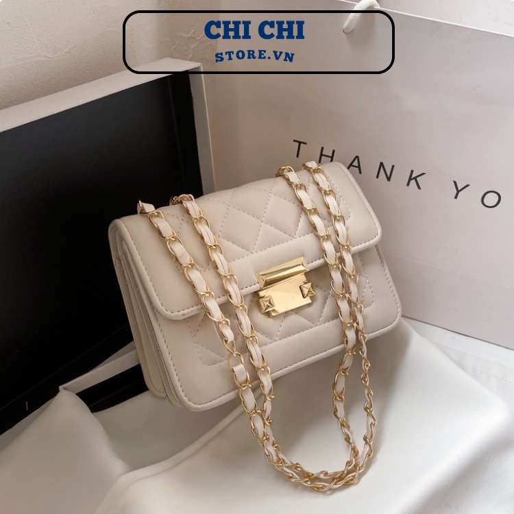 túi đeo chéo mini cá tính dáng vuông nhỏ phối dây xích phong cách hàn quốc thời trang cho nữ Nhiều Ngăn