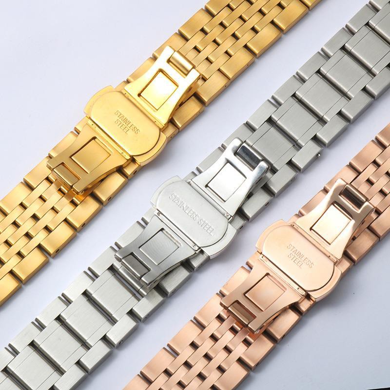 Dây đồng hồ thép không gỉ model 05 kiểu khóa bấm chống han gỉ chống bay màu Size 18mm 20mm 22mm