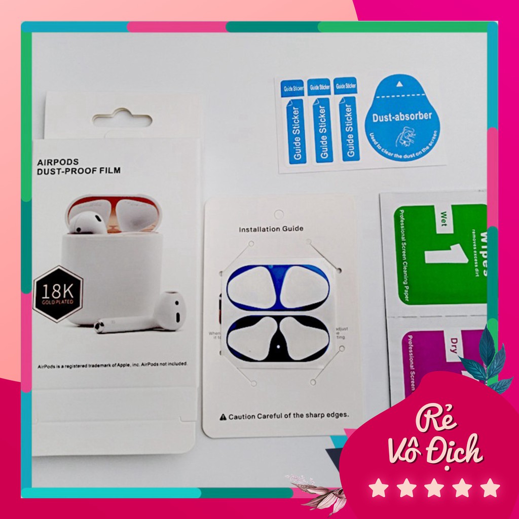 Dán Chống Bụi Bẩn Cho Airpods Bộ 2 Miếng Dán Kim Loại 18K Airpod