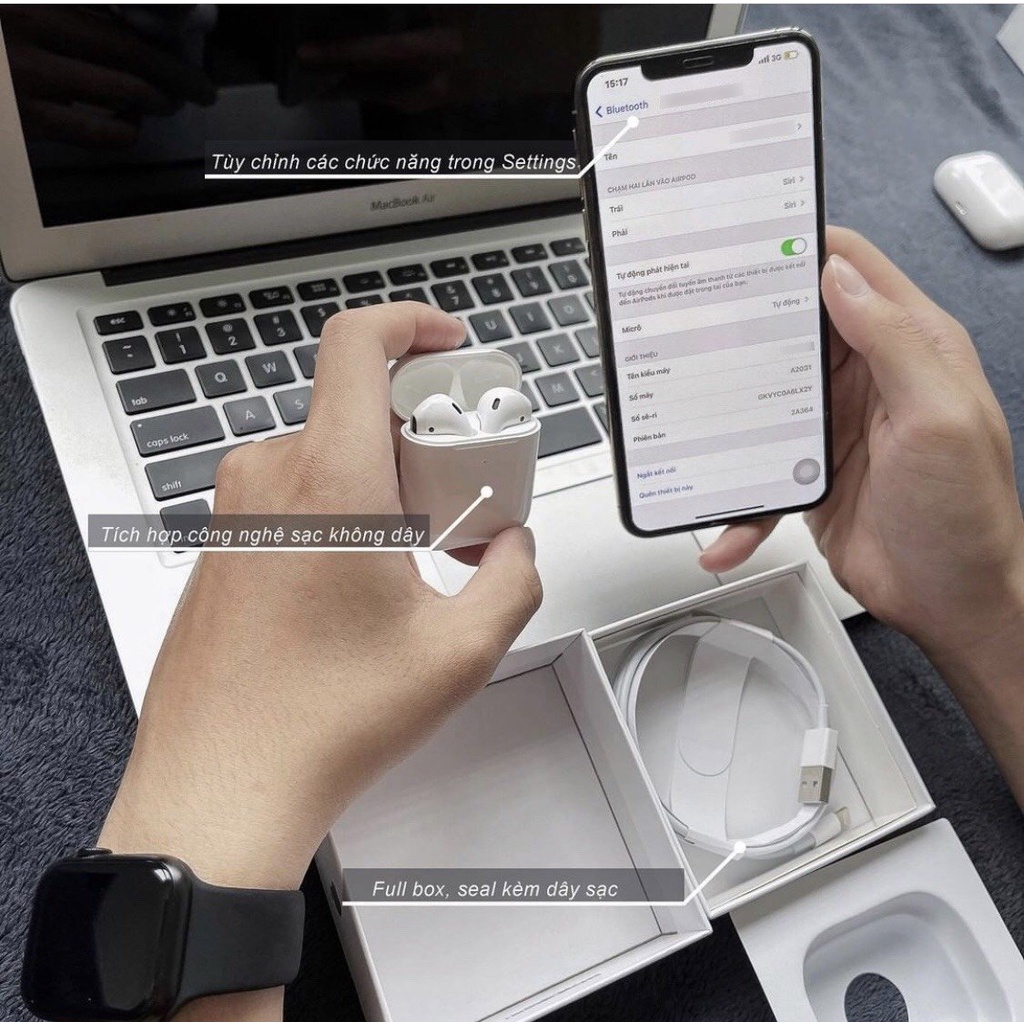 Tai Nghe Bluetooth Airpods 2 Định Vị Đổi Tên - Bỏ Tai Tắt Nhạc - thế hệ thứ 2
