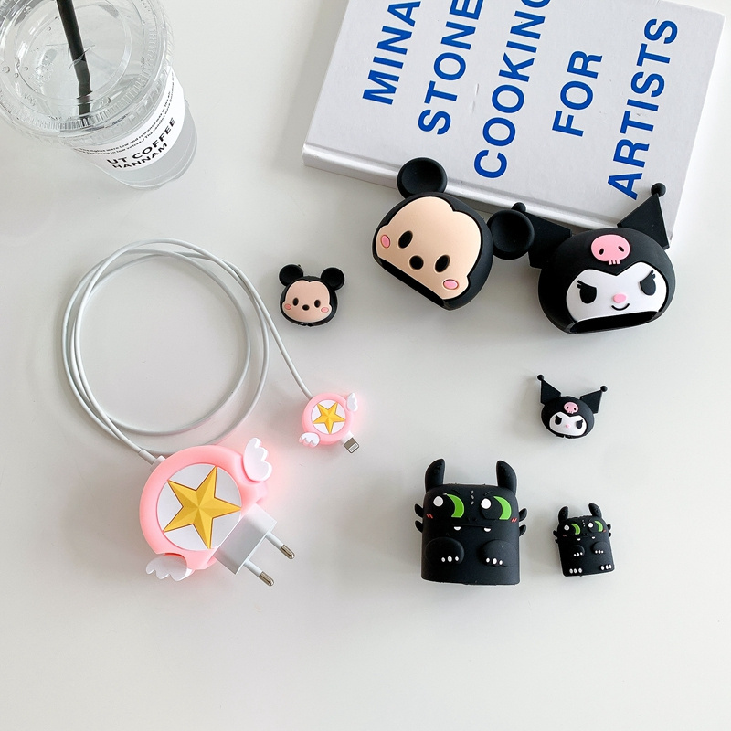 Phụ kiện bảo vệ cáp USB và củ sạc cho điện thoại Iphone 12 18w / 20w kiểu dáng hoạt hình xinh xắn