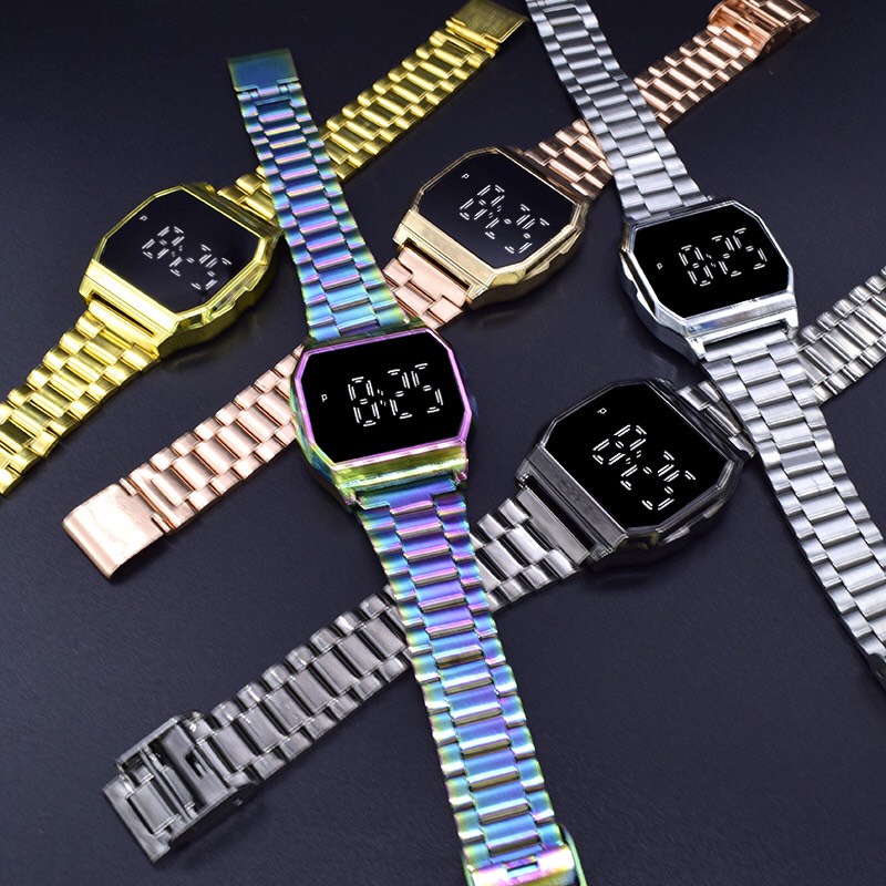 Đồng Hồ Điện Tử Tráng Gương Touch Watch Dây Thép Cao Cấp, Mặt Tráng Gương, Đèn Led Cảm Ứng - Mẫu Hot 2021