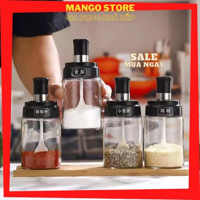 Lọ đựng gia vị hũ gia vị thủy tinh tiện dụng thông minh kèm thìa hàng chất lượng MANGO STORE