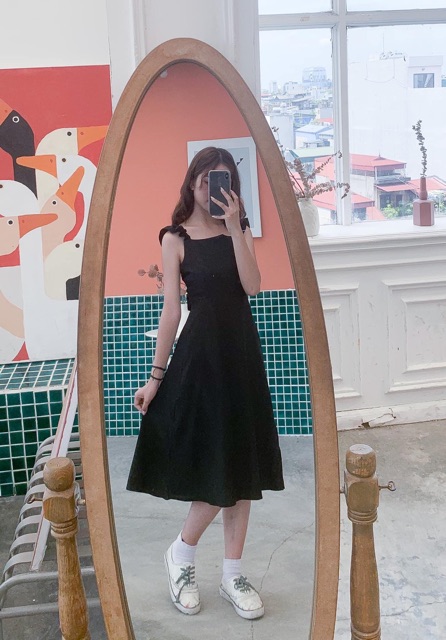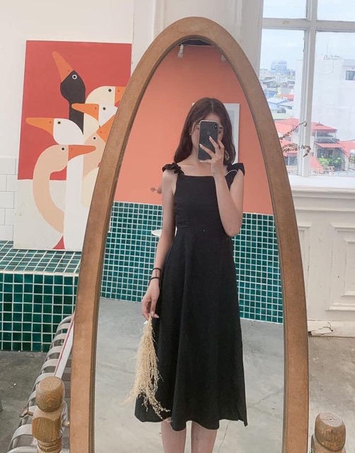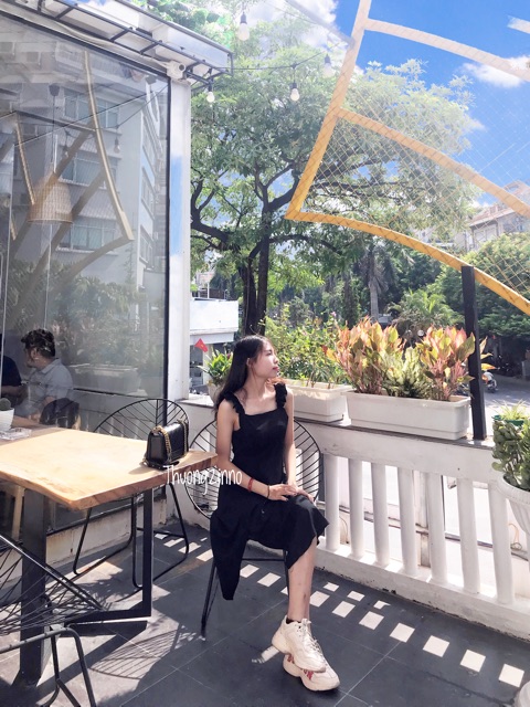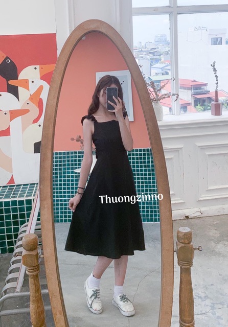 [Ảnh thật/Video] Váy cánh tiên 2 dây đen/ trắng - Đầm 2 dây nữ dáng dài