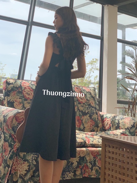 VIDEO THẬT- ẢNH THẬT 6-7-8-9 Đầm cúp ngực hở lưng đen rút dây 2 bên