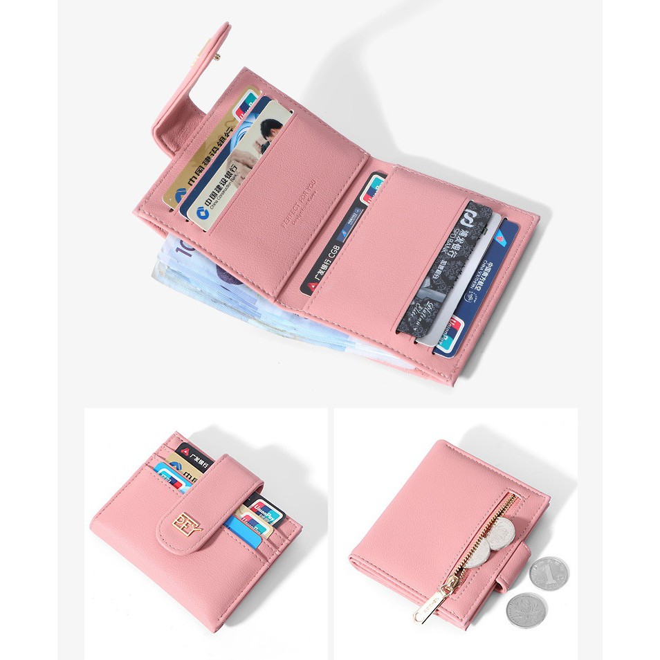 Ví Ngắn Đẹp Da cầm tay Nhỏ Mini Bóp Đựng Tiền thiết kế gấp 3 lần xinh xắn thời trang cho nữ