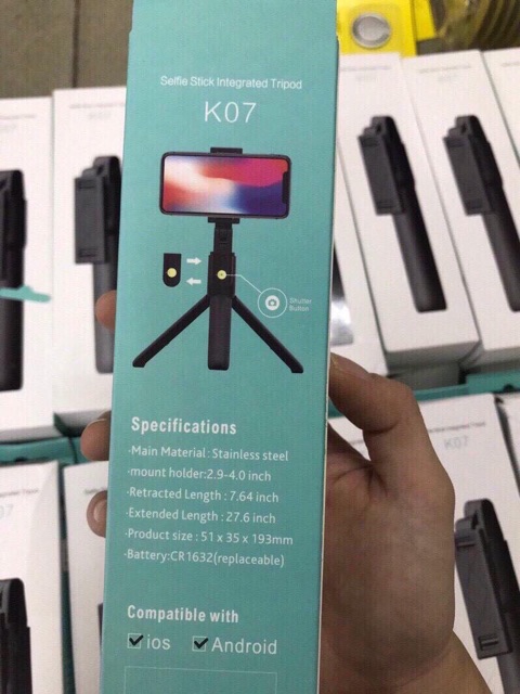 Gậy chụp hình kiêm Tripod 3 chân + Nút bluetooth K07 chính hãng