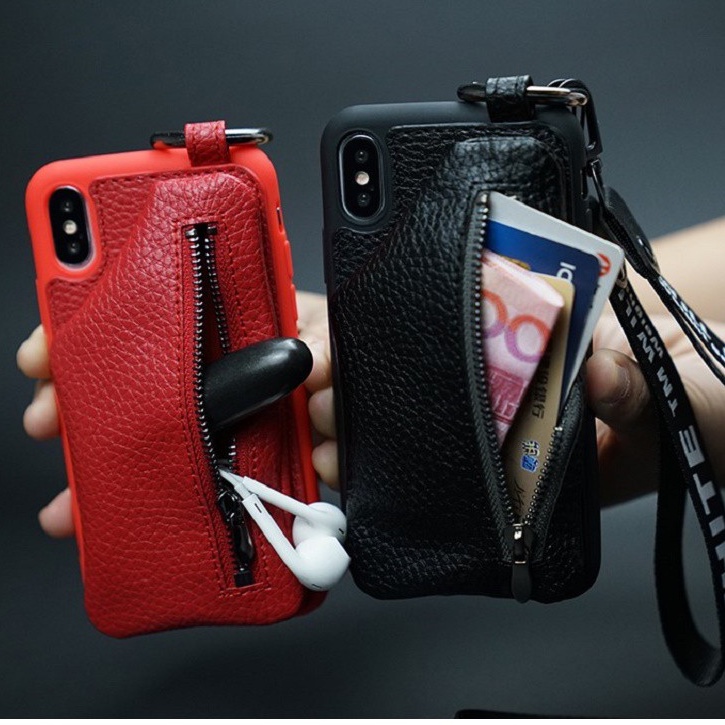 Ốp Iphone ví da, ví da kéo khóa, Iphone ví da kéo
