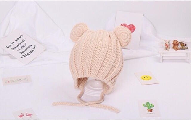 Mũ len tai gấu, tai gấu cho bé, len tai gấu cho