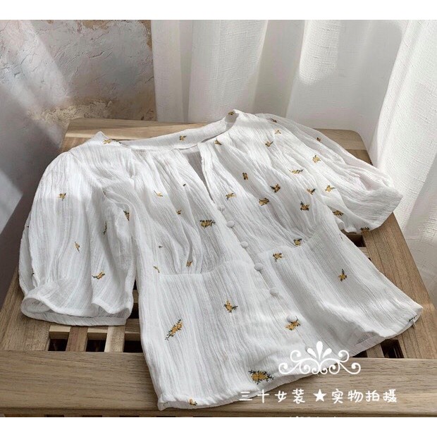 Áo Zara trắng thêu hoa nhí