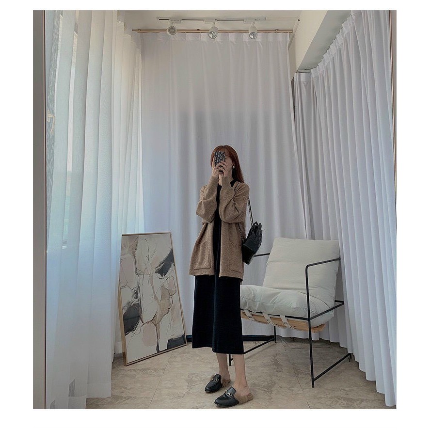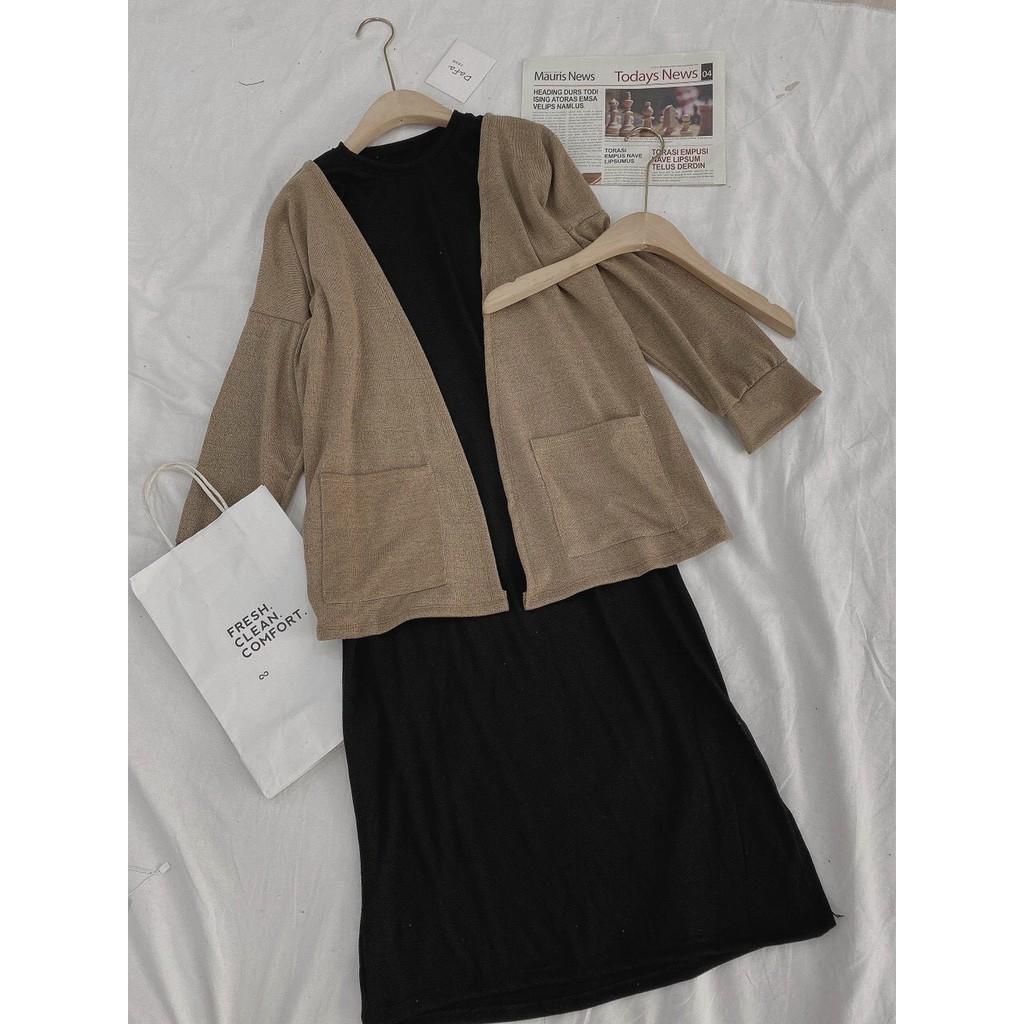 ĐẦM ĐEN + ÁO KHOÁC NÂU