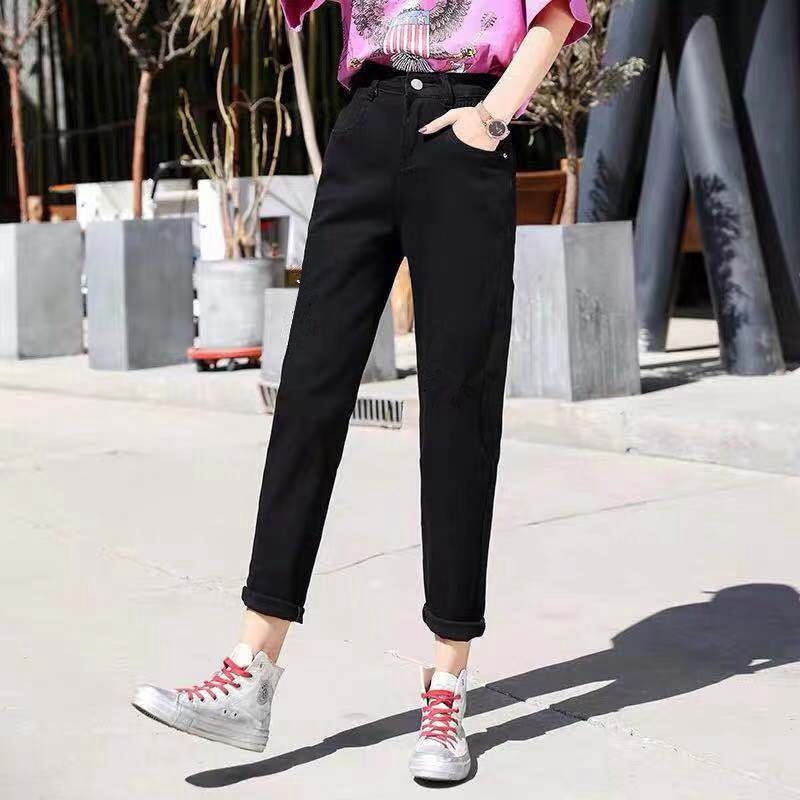 Quần baggy suông lưng cao jean trơn - quần jeans nữ đẹp 2 màu trắng đen