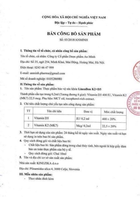 Vitamin k2+d3 LineaBon UK lọ 10ml