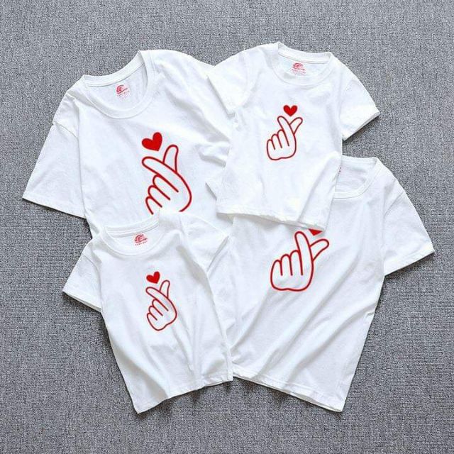 Áo Thun Gia Đình Đồng Phục Màu Đỏ In Trái Tim