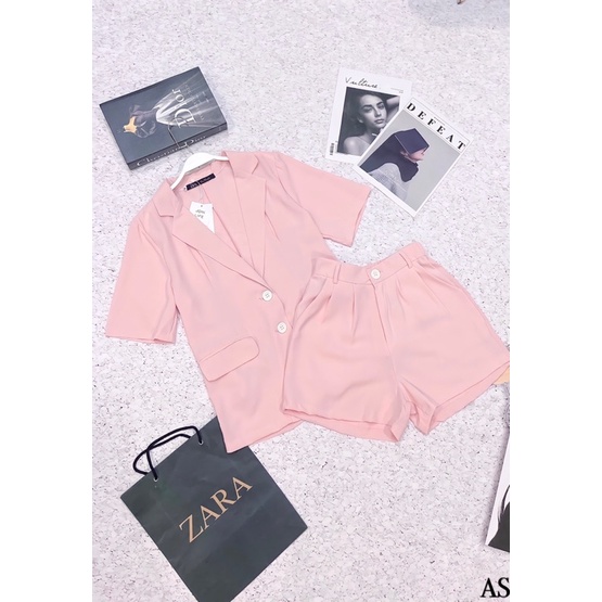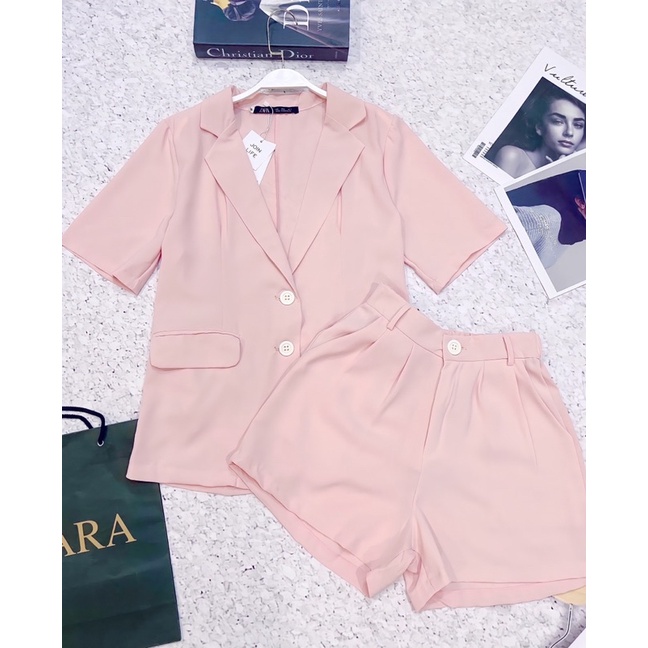 MH SÉT BỘ VEST MÀU HỒNG CÚC TRẮNG CHO NỮ